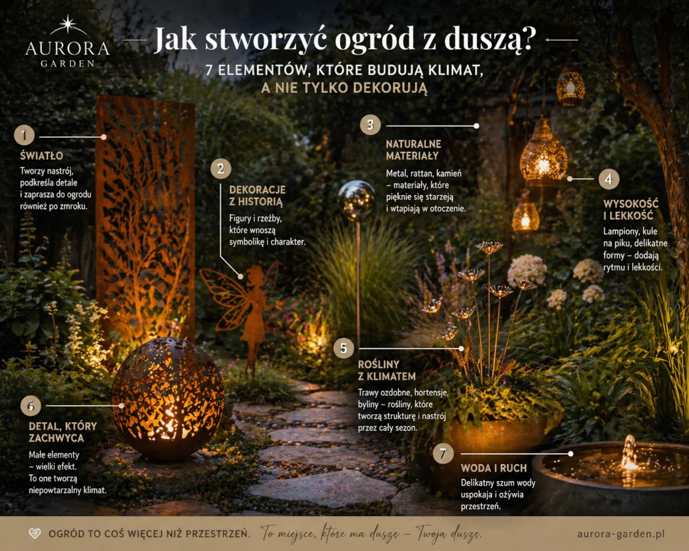 Aurora Garden powstało z myślą o osobach, które widzą w ogrodzie coś więcej niż przestrzeń wokół domu. Widzą w nim miejsce ciszy. Światła o poranku. Zapachu lata. Chwil tylko dla siebie. Tworzymy i selekcjonujemy dekoracje ogrodowe premium, które nie są przypadkowe. Każda ozdoba do ogrodu, każda rzeźba kinetyczna, każdy detal z metaloplastyki ma znaczenie. Ma proporcję. Ma charakter. Ma historię.Jeśli szukasz wyjątkowych dekoracji ogrodowych i na taras, które podkreślą Twój styl – jesteś we właściwym miejscu.