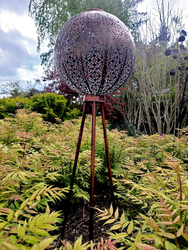 Ten lampion ażurowy na trójnogu to nie tylko praktyczne źródło światła, ale również prawdziwy element dekoracyjny, który zachwyca zarówno nocą, jak i w ciągu dnia.