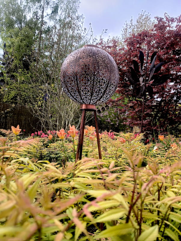 Dzięki podniesieniu na trójnogu lampion tworzy magiczne wzory światła i cienia o zmierzchu, stając się prawdziwym elementem dekoracyjnym w ciągu dnia i po zmroku.