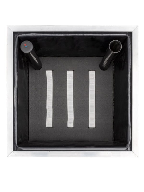 Na dnie umieszczony jest zbiornik na wodę, który dzięki zainstalowanym tam pasom równomiernie dostarcza wodę do korzeni roślin.
