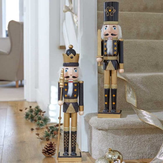 Ręcznie malowany w odcieniach czerni i złota, wykonany z drewna Dziadek do Orzechów sprawi, że domownicy z niecierpliwością będą oczekiwać na pierwszą gwiazdkę.