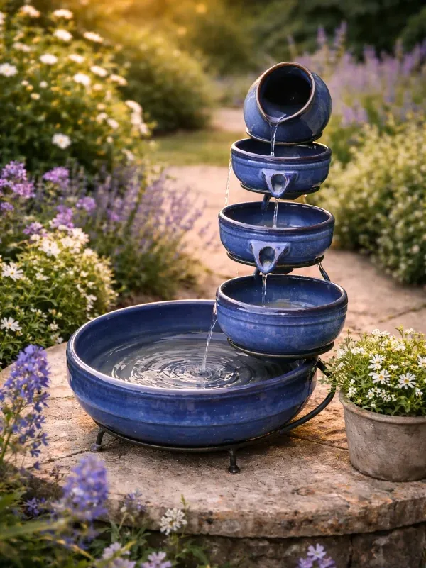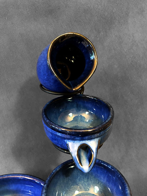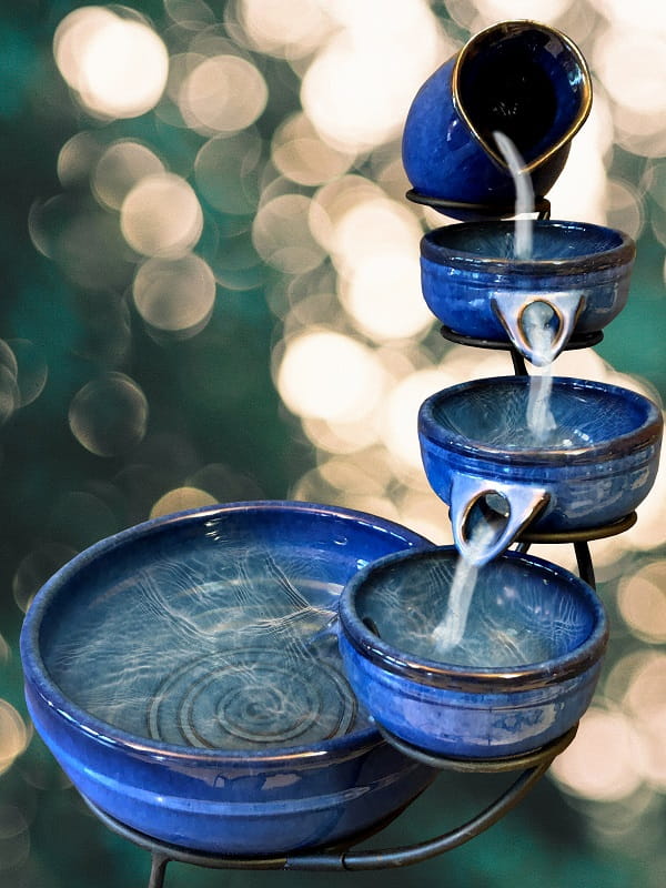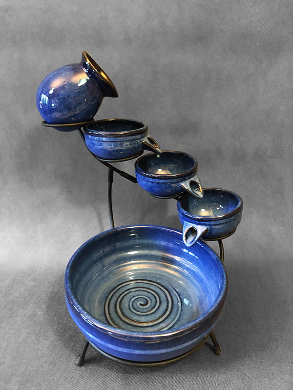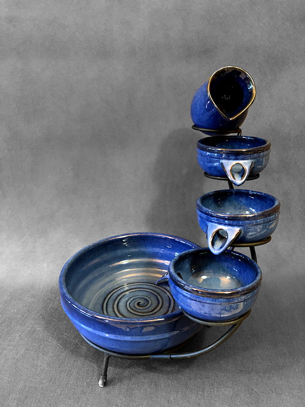 Składa się z kilku, kaskadowo umieszczonych na stelażu ceramicznych naczyń.