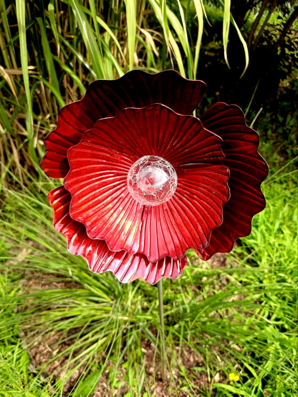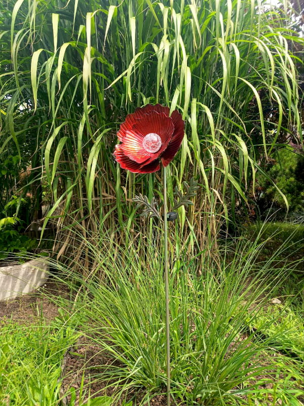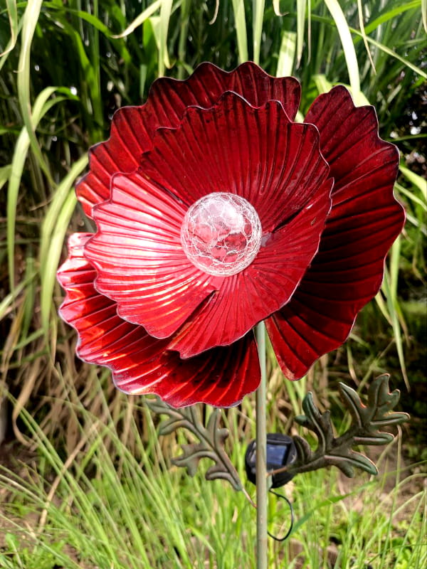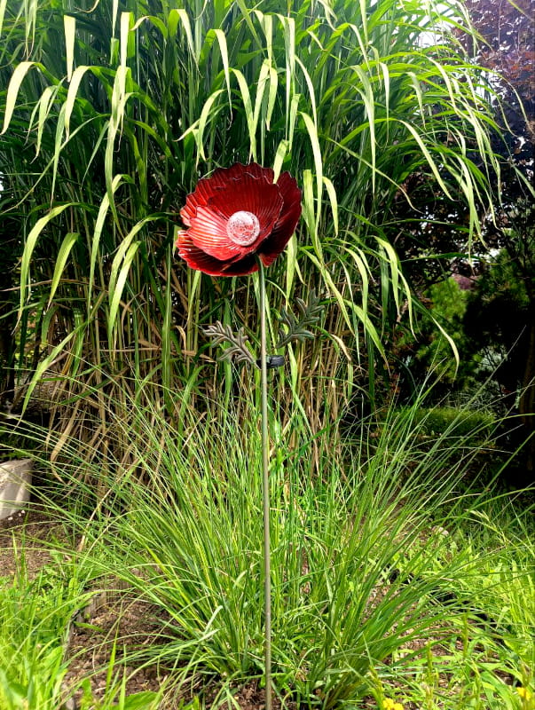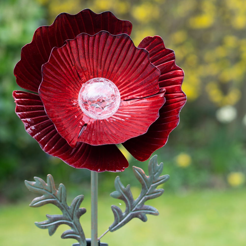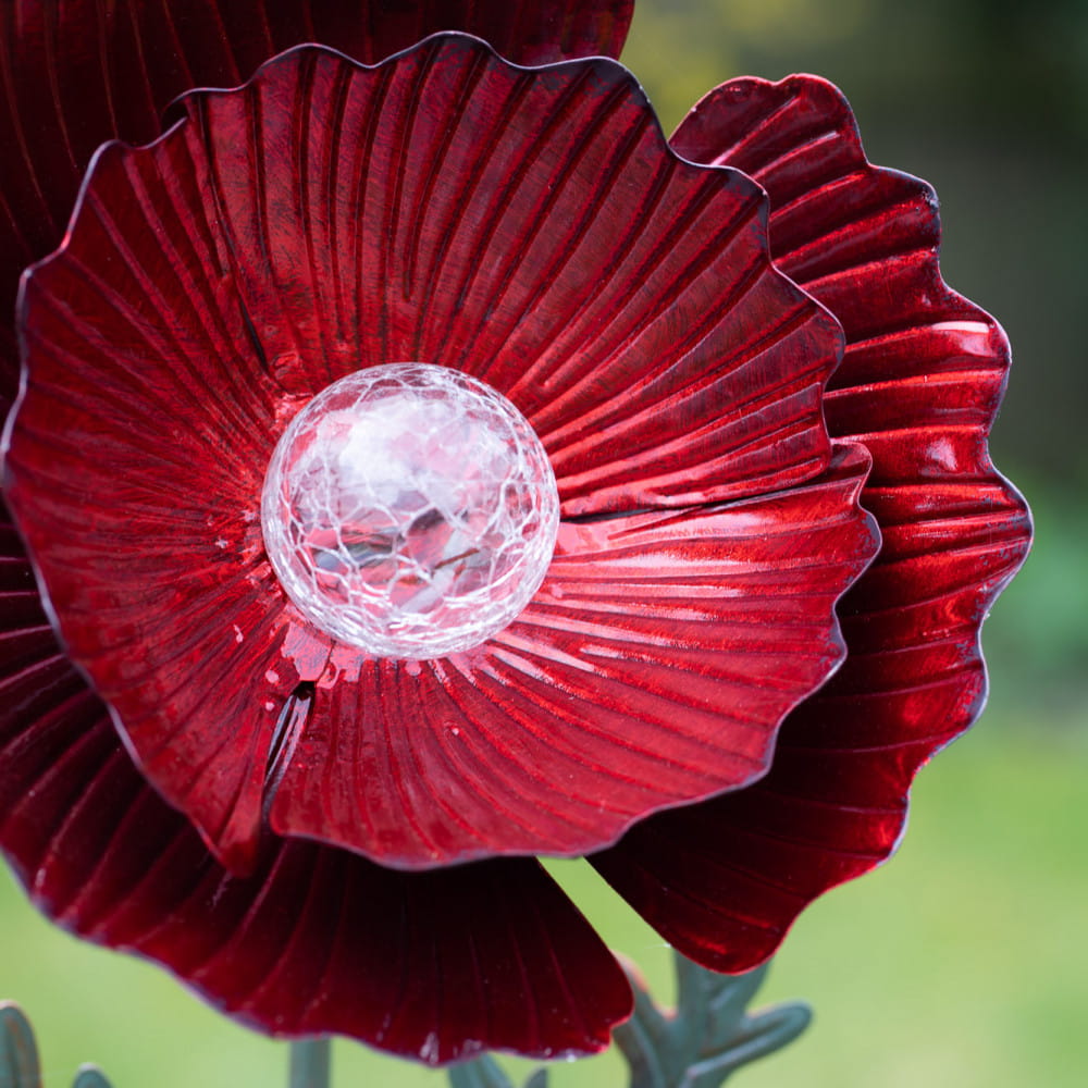 Czerwony Mak solarny został wykonany ze stali o wysokiej jakości, co zapewnia trwałość i odporność na warunki atmosferyczne.
