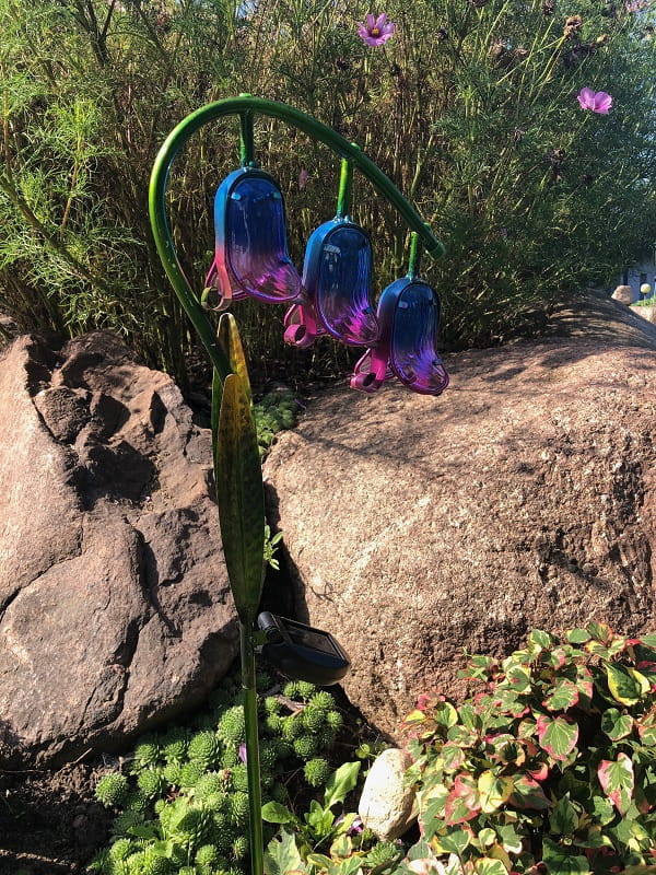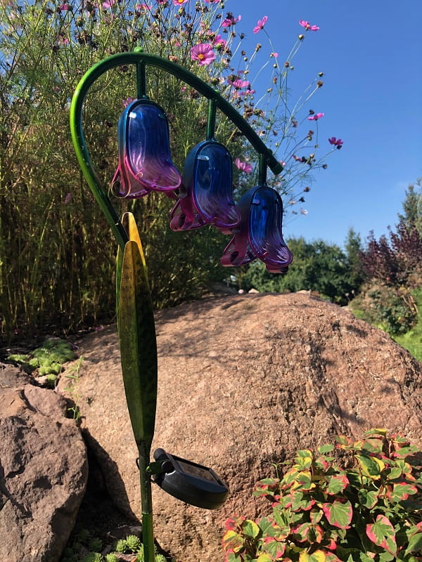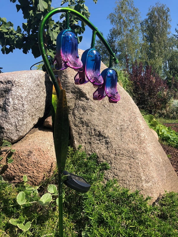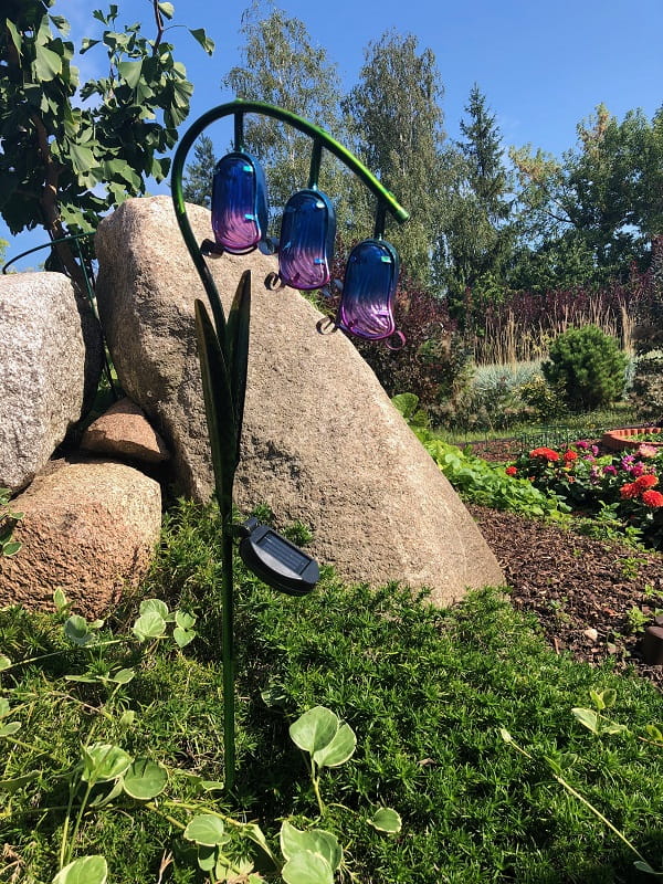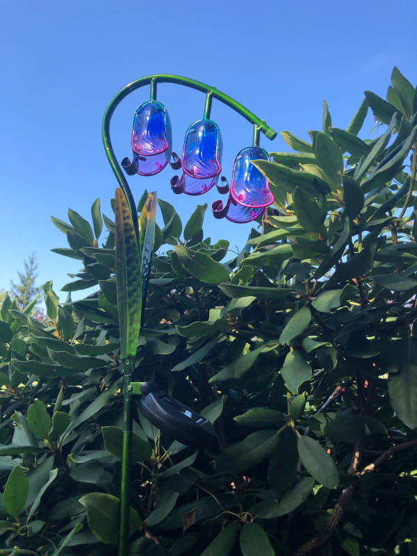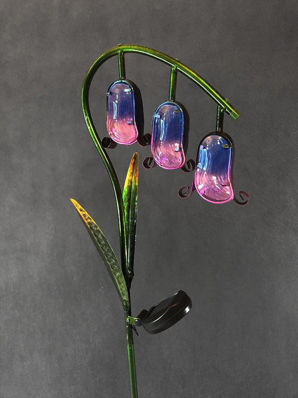 Solarne dzwoneczki z płatkami ze szkła i metalu osadzonymi na wysokiej sztycy ze stali szlachetnej sprawią, że Twój ogród będzie rozświetlony wiosenną świeżością przez cały sezon.