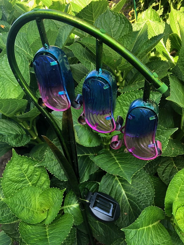 Lampa świeci się delikatnym, niebieskim światłem, a jej forma pozwoli urozmaicić te miesca w ogrodzie, w których dominuje zieleń lecz brakuje kolorystycznych akcentów.