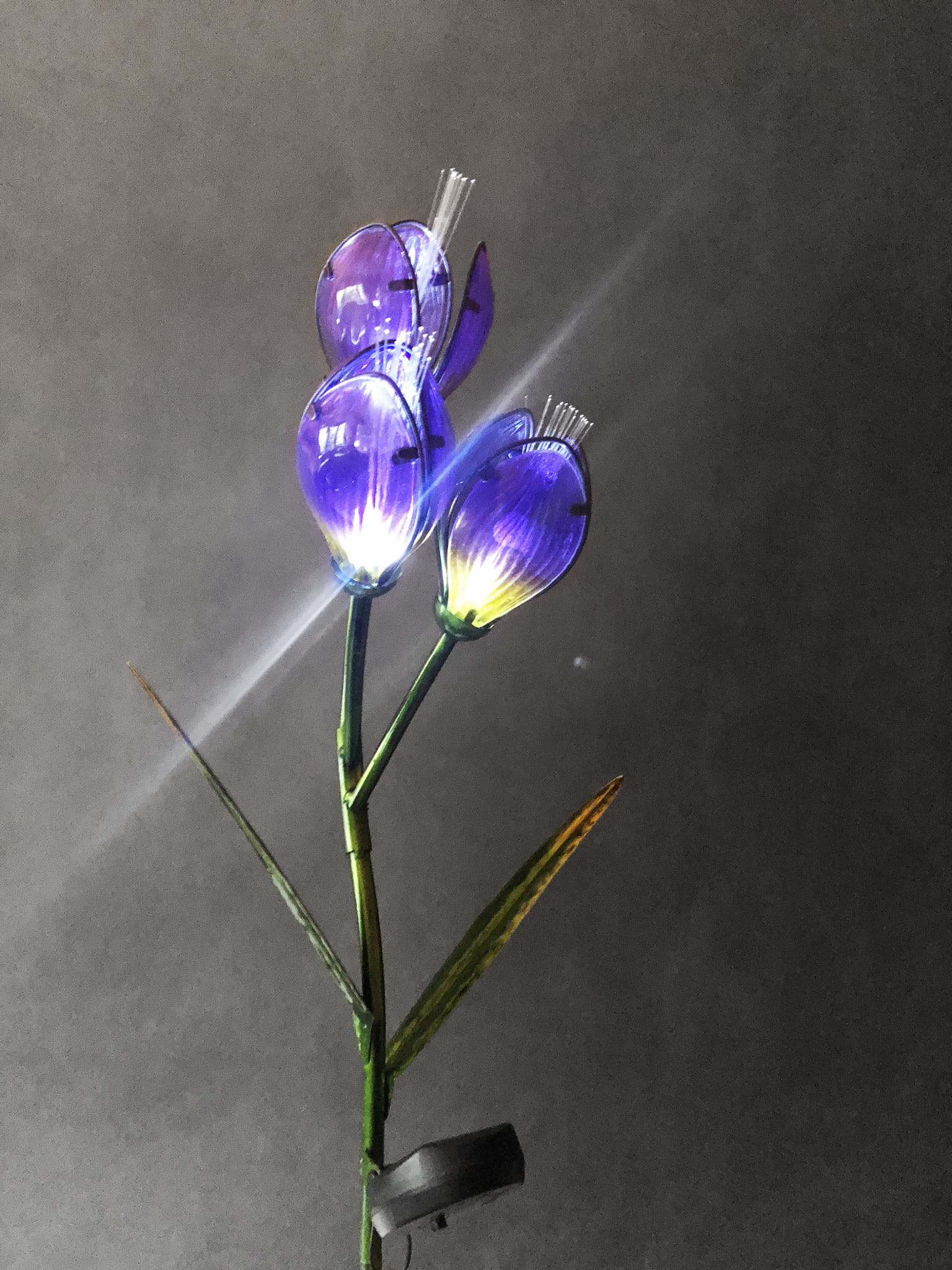 Krokus po zmierzchu automatycznie zaświeci się białym światłem, a pręciki światłowodowe przeniosą delikatny poblask tworząc niezwykły efekt.