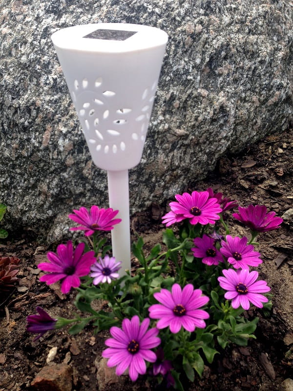 Możesz też zestawić tę ażurową lampę solarną z białą ceramiczną lampa na piku aby stworzyć ciekawą kompozycję.
