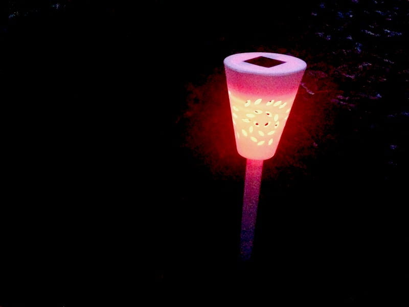 Ozdobna lampa na ścieżce ogrodowej: Umieść lampę na końcu ścieżki ogrodowej lub wśród roślinności, aby oświetlić ją w nocy. Zmieniające się kolory światła nadadzą magicznego wyglądu ogrodowi i dodadzą mu uroku.