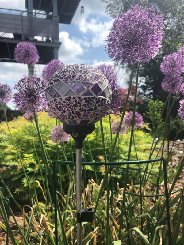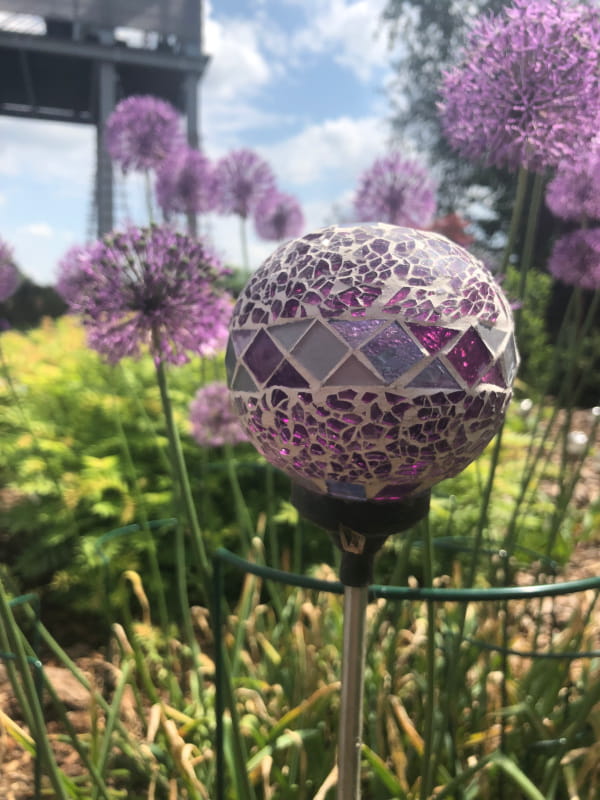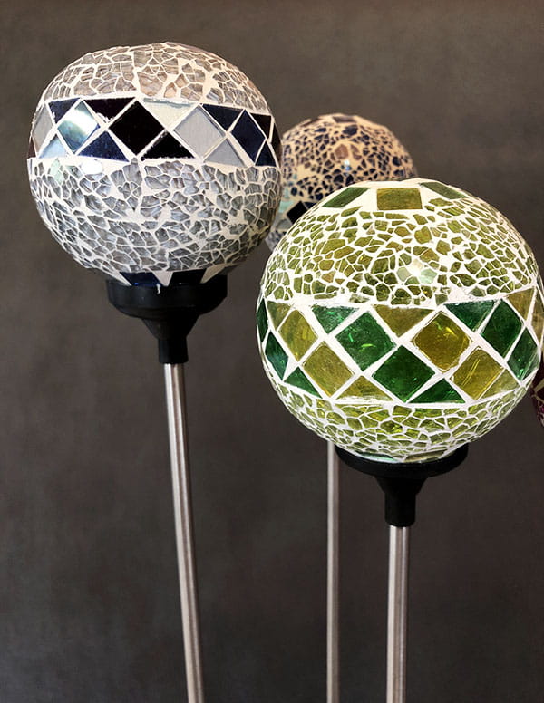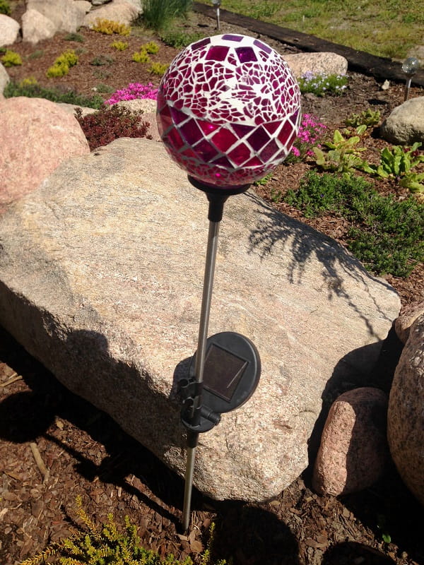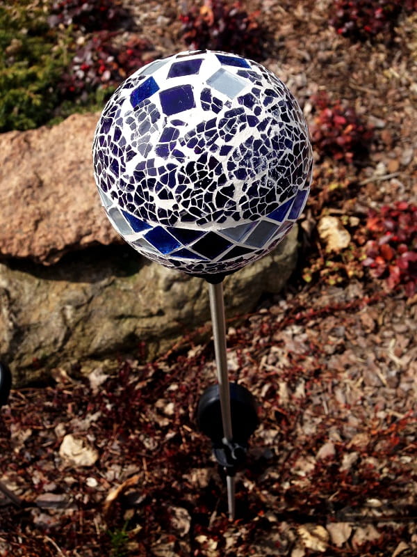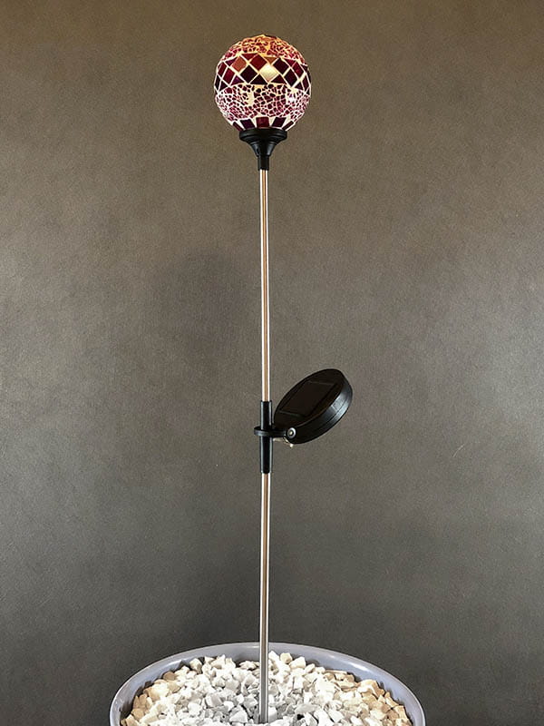 Dzięki wysokiemu pikowi, nasza mozaikowa lampa solarna wspaniale prezentuje się jako punkt centralny aranżacji ogrodu lub jako element ozdobny wzdłuż ścieżek czy alejek.