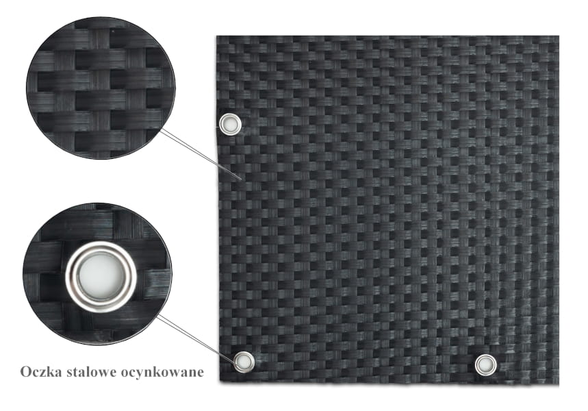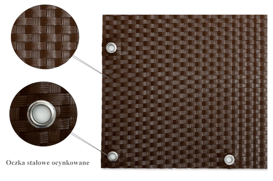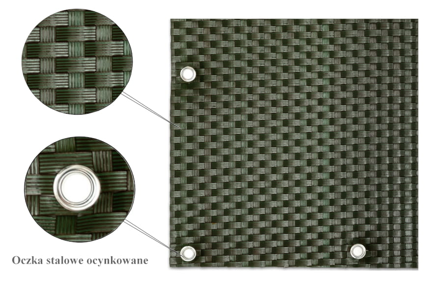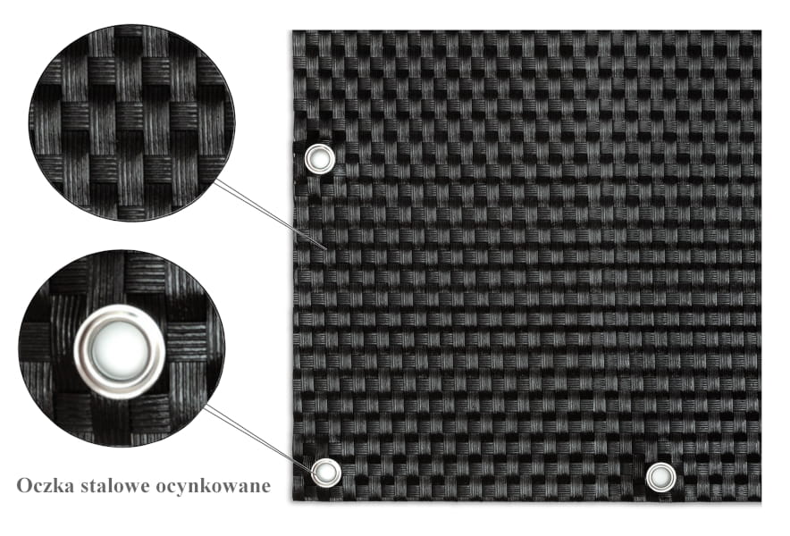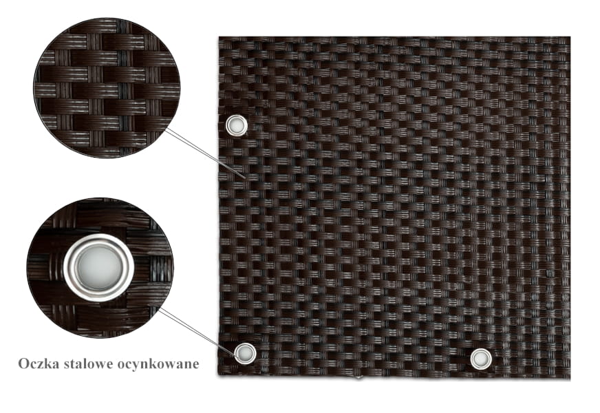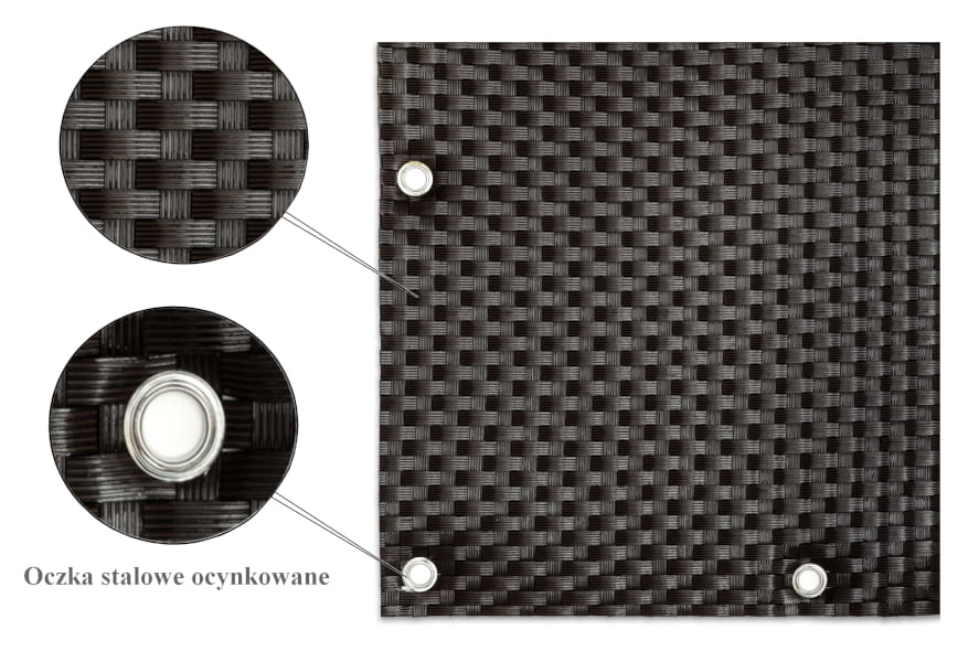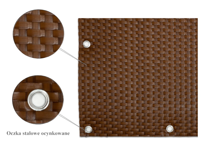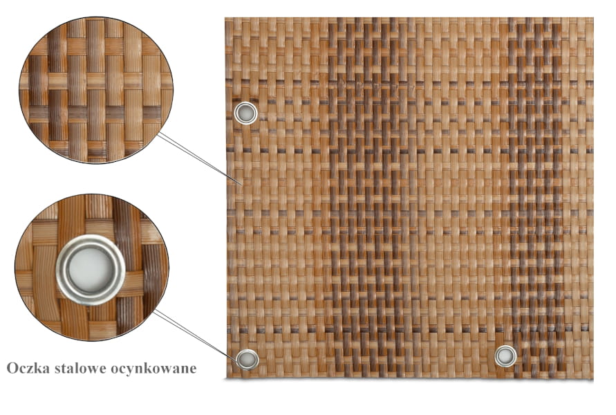 Osłony-maty technorattanowe ok. 1300 g/m2 wykonywane są z plecionych pasków technorattanu - tworzywa cechującego się wysoką wytrzymałością i odpornością.