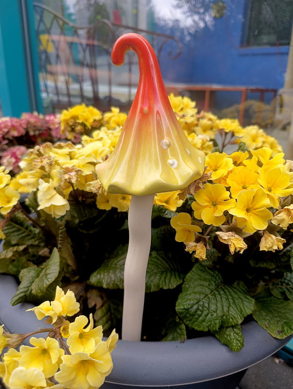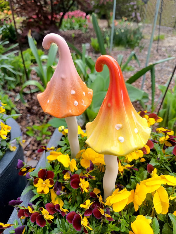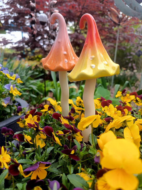 Magiczne grzybki są wykonane z ceramiki i ręcznie szkliwione.