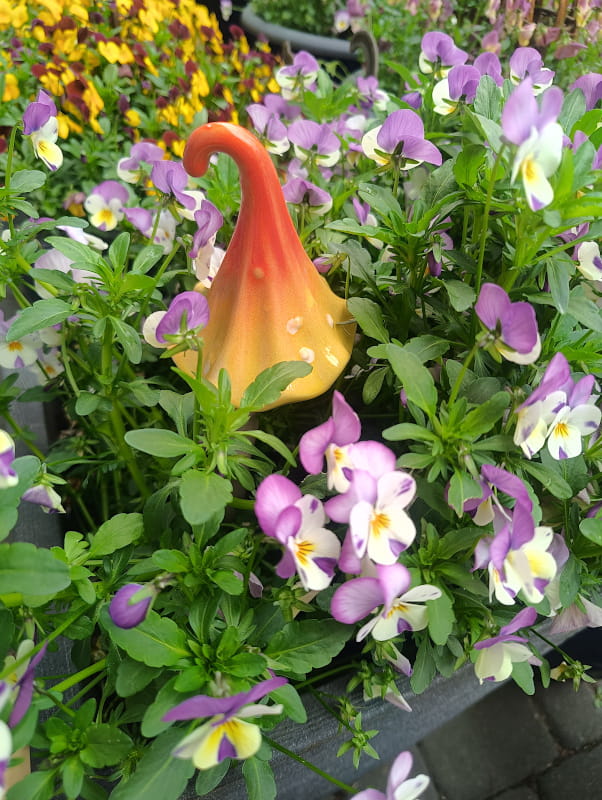 Magiczny Grzybek wita Cię swoim uśmiechem i kolorowym wdziękiem, rozświetlając nawet najbardziej szarą przestrzeń ogrodu.