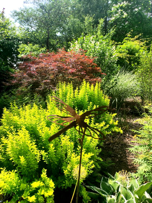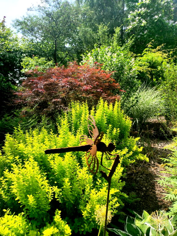 Ważka Ażurowa doskonale komponuje się zarówno z naturalnymi elementami otoczenia, jak i innymi dekoracjami ogrodowymi.