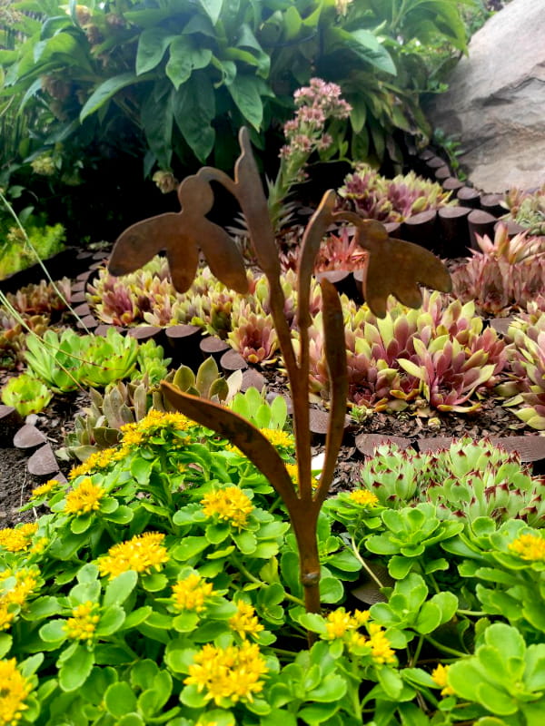 Metalowa konstrukcja tej nietuzinkowej ozdoby ogrodowej jest trwała i odporna na warunki atmosferyczne.