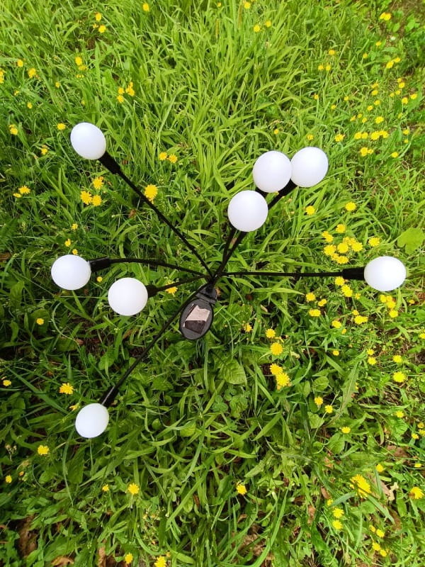 Każde źdźbło zakończone jest małą kulą, która w nocy rozświetla się chłodnym, subtelnym światłem LED.
