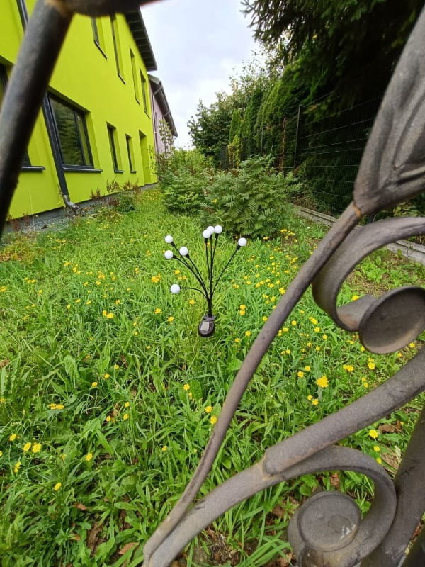 A gdy zapada zmrok, osiem świetlnych kul zaczyna świecić chłodną bielą, tworząc wrażenie rośliny z innego wymiaru.