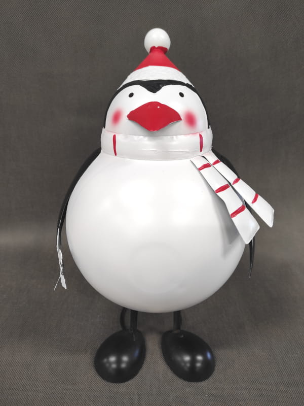 Nasz wesoły pingwinek wykonany jest z metalu i może dekorować wnętrze domu, ale nie straszne są mu również warunki atmosferyczne i możecie go ustawić na tarasie, balkonie lub w ogrodzie.
