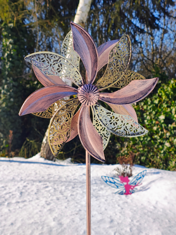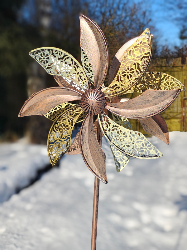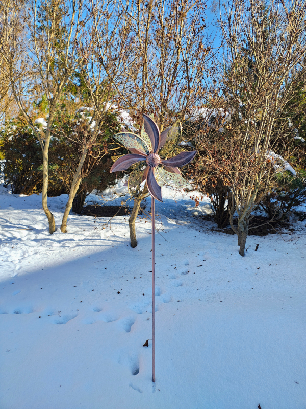 Rzeźba Wiatrowa Anemon idealnie nadaje się do wstawienia jej np. w donicę.