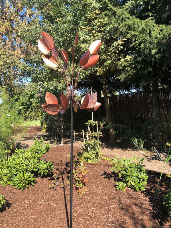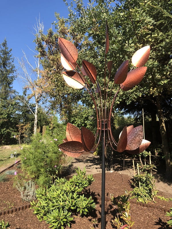 Możesz posłużyć się rzeźbami kinetycznymi jako wykończeniem obrzeży kwietników lub wkomponować je pomiędzy nasadzenia w ogrodzie.