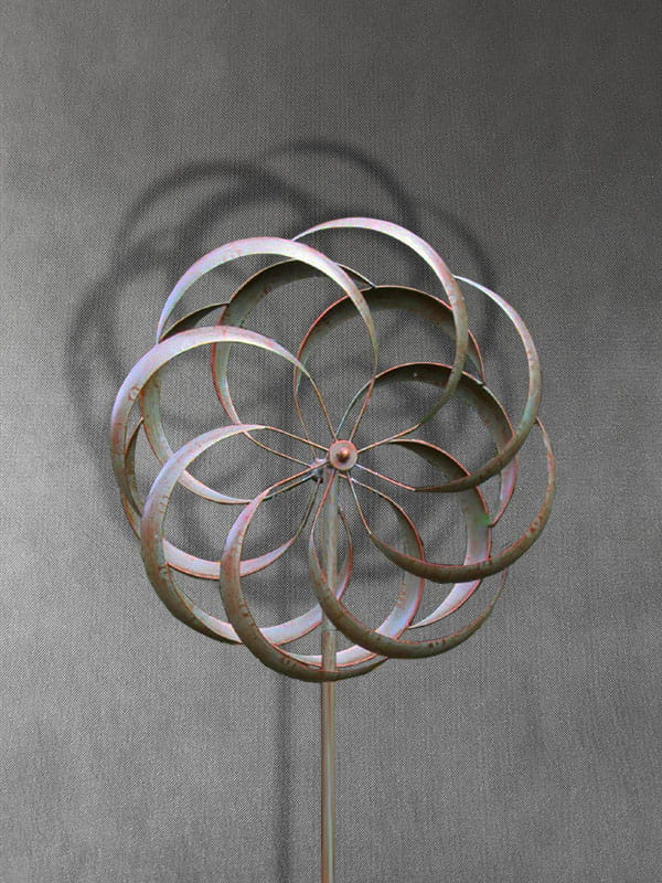 Rzeźbę Wiatrową możesz wstawić bezpośrodnio pomiędzy kwiaty w ogrodzie przeddomowym.