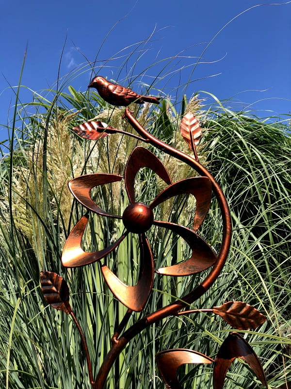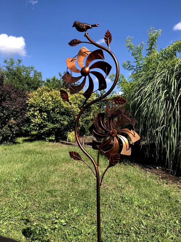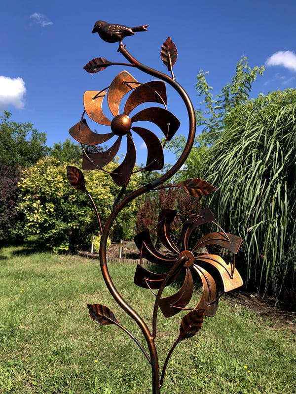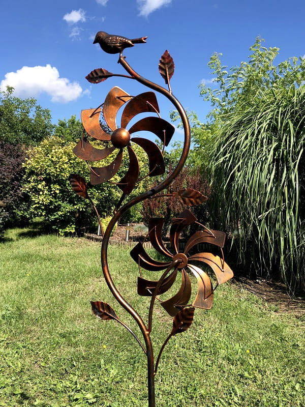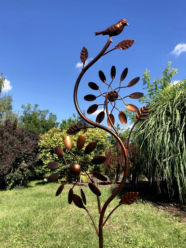 Ta niewielka, acz bardzo atrakcyjna Rzeźba Wiatrowa idealnie sprawdzi się w kompozycjach ogrodowych i ciekawych rozwiązaniach aranżacji tarasów.