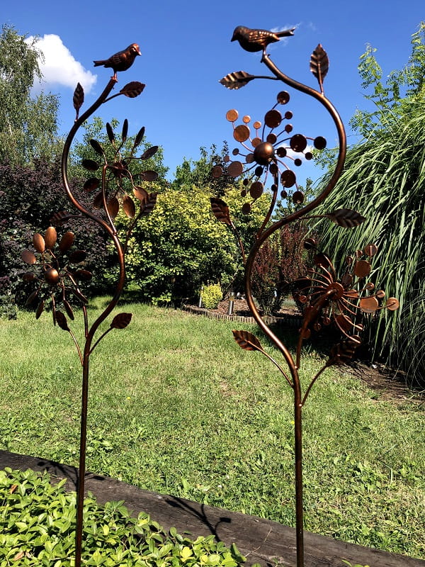Sama Rzeźba Kinetyczna Ptaki wykonana jest ze stali ocynkowanej co czyni ją odporną na korozję.