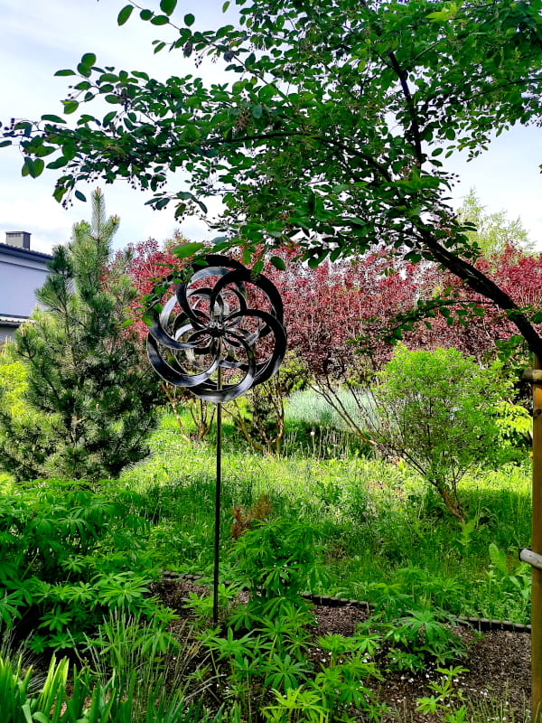 Przepięknie prezentująca się ruchoma ozdoba ogrodowa o niezwykłej formie.