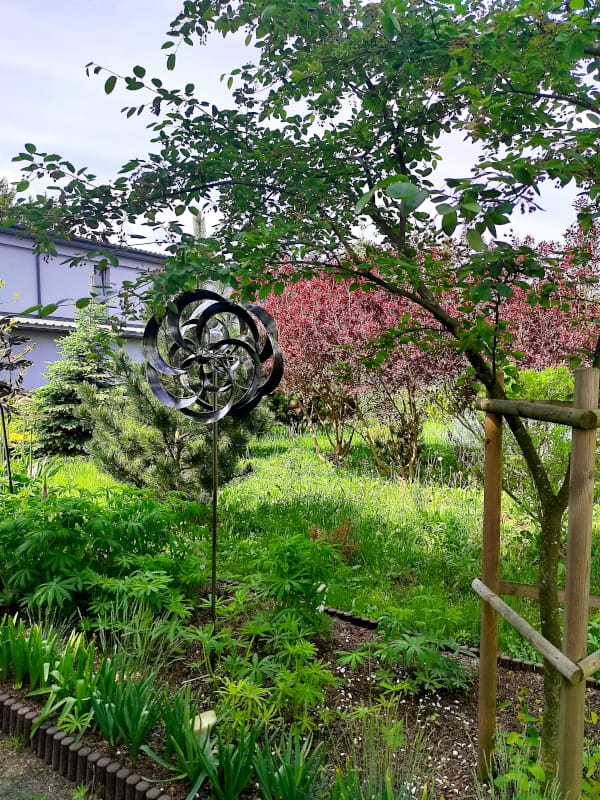 Możesz też wstawić Rzeźbę Kinetyczną pomiędzy niskie krzewy lub płożące iglaki.