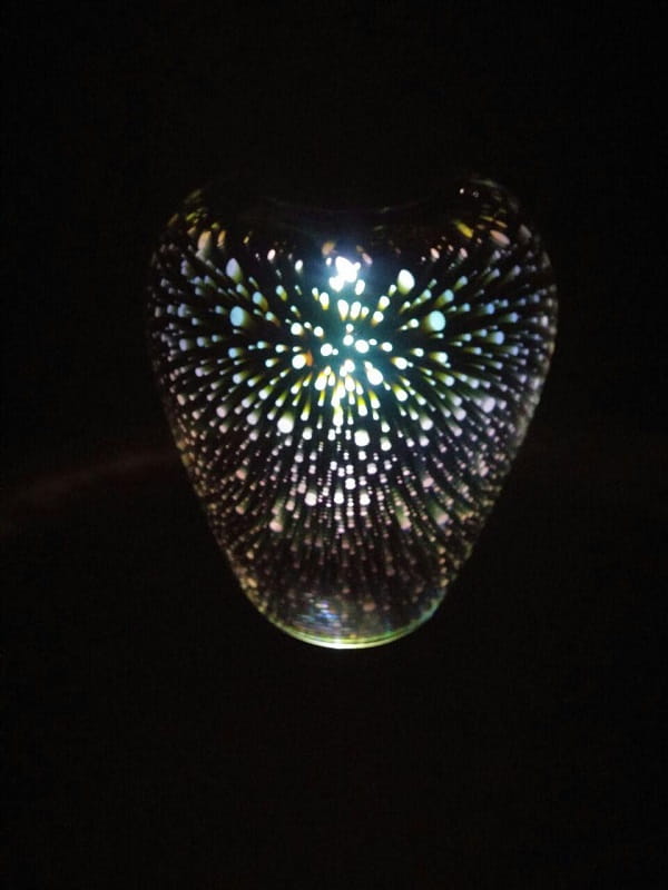 Światło emitowane przez lampę tworzy efekt hologramu, który dodaje wyjątkowego uroku i atmosfery nocnemu pejzażowi.